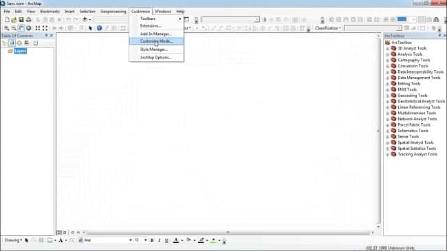 بعد از نصب افزونه arcgoogle وارد نرم افزار arcmap شده و در منو قسمت customize سپس زیر منو customize mode می شویم.