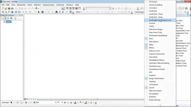 در ادامه ابزار های افزونه arcgoogle روی صفحه به نمایش درمی آیند.