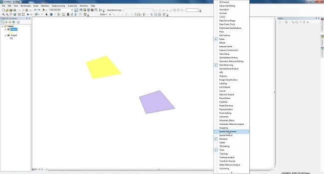برای فعال سازی ابزار spatial adjustment بر روی نوار بالا نرم افزار arcgis راست کلیک کرده و تیک این ابزار را فعال میکنیم.