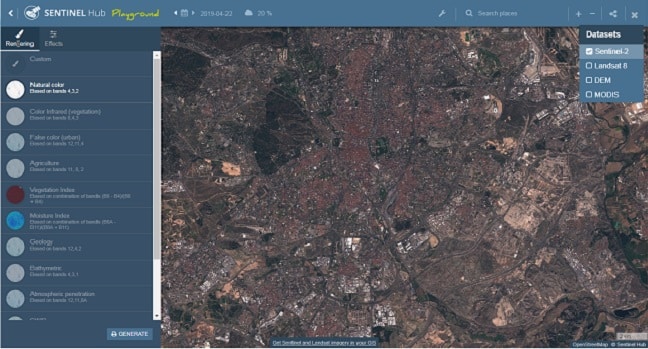 Sentinel-2 وضوح 10 متری در قرمز، سبز، آبی و مادون قرمز نزدیک را ارائه می دهد،در حال حاضر بهترین وضوح موجود برای تصاویر ماهواره ای رایگان، نرم افزار Sentinel-2 می باشد و این نرم افزار به درستی قادر است تا سراسر کره زمین را پوشش دهد و هر 5 روز، تصاویر ماهواره ای جدید را دریافت کنید از طریق Sentinel Hub، کاربران همچنین می توانند به داده های Sentinel-1، که در حال حاضر تنها مجموعه داده SAR آن رایگان است، دسترسی پیدا کنند. SAR مخفف Synthetic Aperture Radar است و به طور گسترده ای در برنامه هایی که نیاز به نظارت مداوم دارند و تغییرات را با گذشت زمان تشخیص میدهند استفاده می شود.