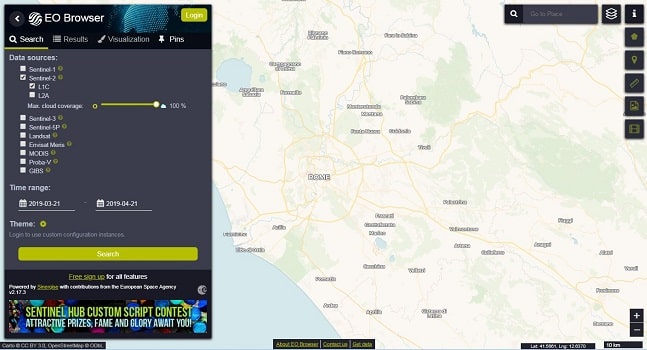با استفاده از این منبع شما می توانید در بخش EO Browser بدون نیاز به عضویت از ماهواره های مختلف همچون لندست ، سنتینل ، مدیس و… تصاویر ماهواره ای وی ا DEM دانلود کنید. همچنین در قسمت playground منبع شما قادر خواهید بود تصاویر را با زوم های مختلف تصویر یا DEM دانلود نمایید.