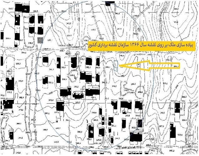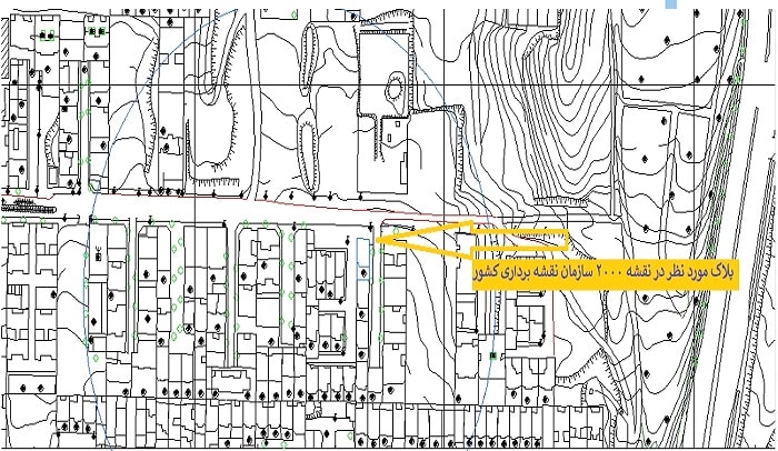 تصویر بالا ملکی است که در نقشه ۱:۲۰۰۰ سازمان نقشه برداری پیاده شده است.