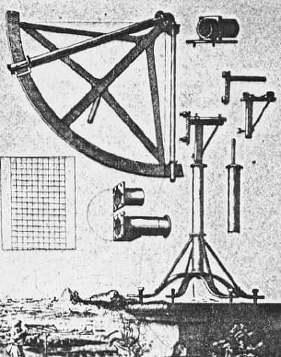 Snellius (هلند) مخترع مثلثی (۱۶۱۵) ، زاویه هایی را با چهار قطعه اندازه گرفت و همینطورPicard (فرانسه) نیز این کار را هنگامی که مثلث را در امتداد نصف النهار پاریس از Sourdon ، به Malvoisine که جنوب پاریس است، انجام داد.